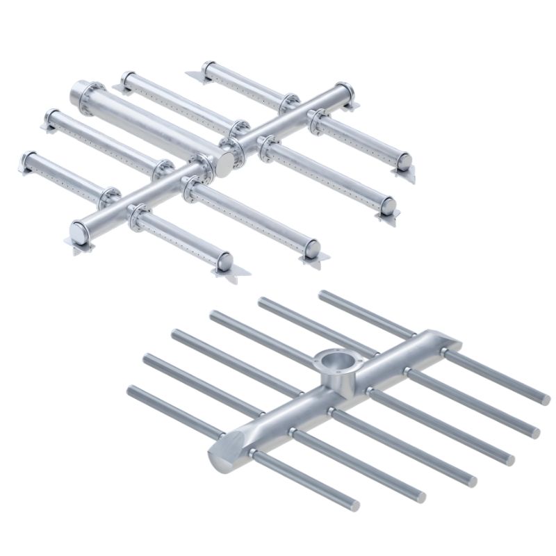 每个项目均需对容器结构和喷嘴布置进行全面分析,以确定最优布局。解决方案涵盖从轮毂辐条式组装到平行支管配置等多种形式,并可配备引流区以适应容器底部几何形状。支管采用精密开孔管道,平衡了机械强度与分布性能。可拆卸的筛管外套设计便于维护和清洁,特别适用于高磨蚀性或高腐蚀性的工况环境。